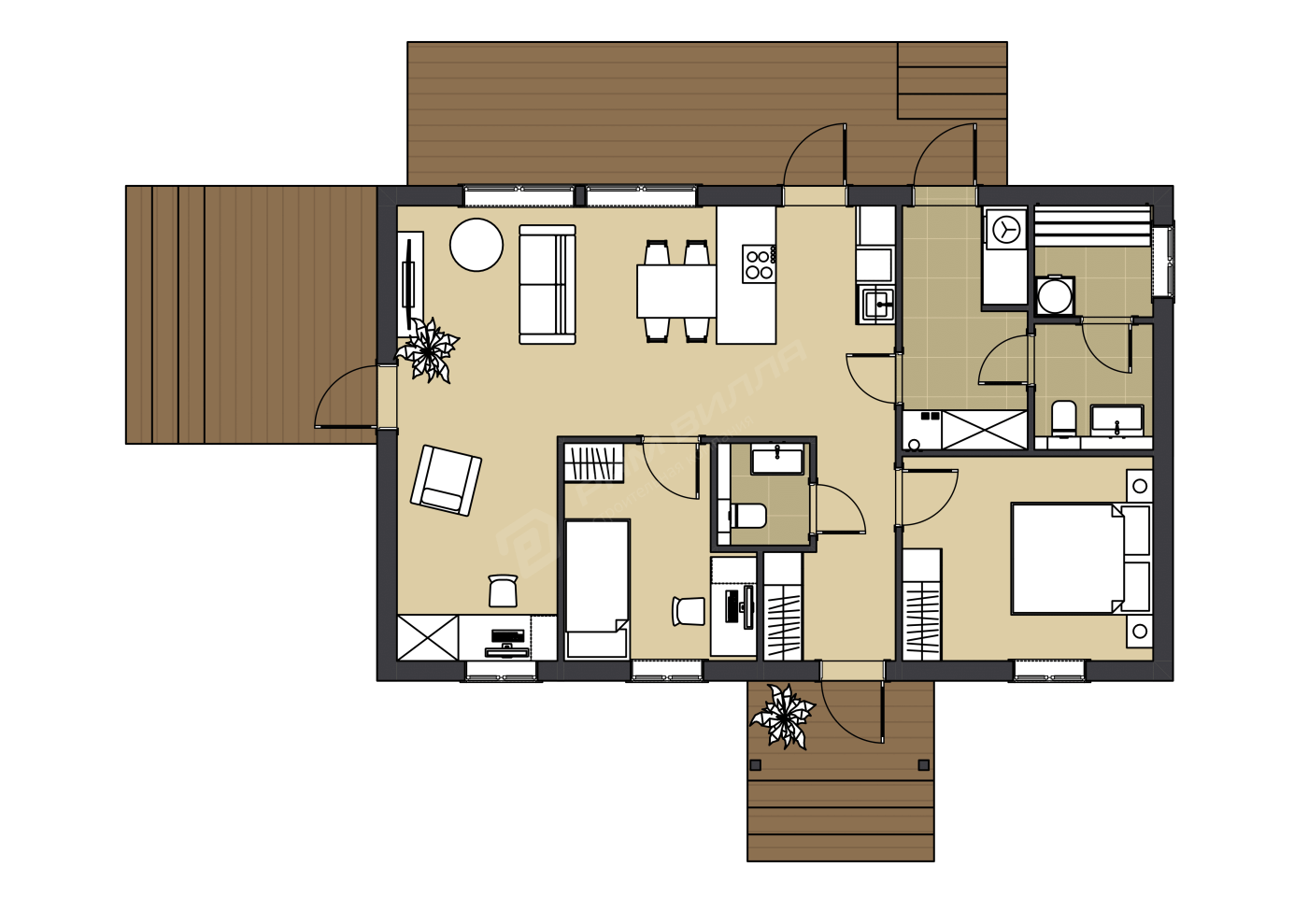 Мы - компания полного цикла. Мы берем проект от идеи, до полного воплощения на участке. За нами не приходится доделывать работу. Например крышу мы заканчиваем полностью (подшиваем софитами, устанавливаем снегозадержатели, водосточную систему).