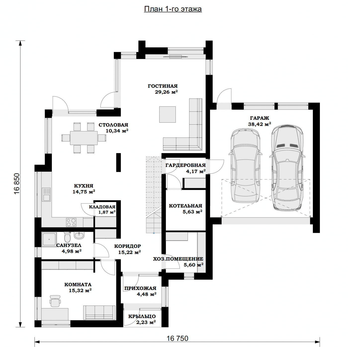 Двухэтажный дом из газобетона 17 на 17 с гаражом значительно сократит расходы на строительство за счет минимизации размера фундамента и меньшей площади крыши. К тому же, дом на два этажа считается более энергоэффективным вариантом, особенно в холодное время года.