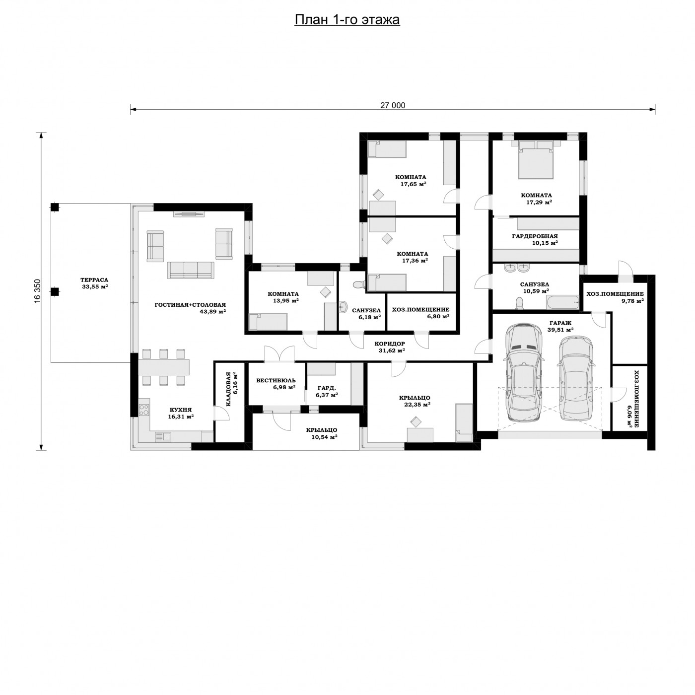 Наша компания не просто разрабатывает проект и помогает с оформлением документов, но и самостоятельно начинает подготовку к работам, заселению рабочих бригад и доставляет все необходимые материалы для строительства дома по Московской области. Мы с 2014 года не просто занимаемся строительством домов, а воплощаем в реальность и даем жизнь самым разным идеям, по которым разрабатываем индивидуальные планы постройки, и Одноэтажный Дом 16 на 27 под ключ — она из таких работ.