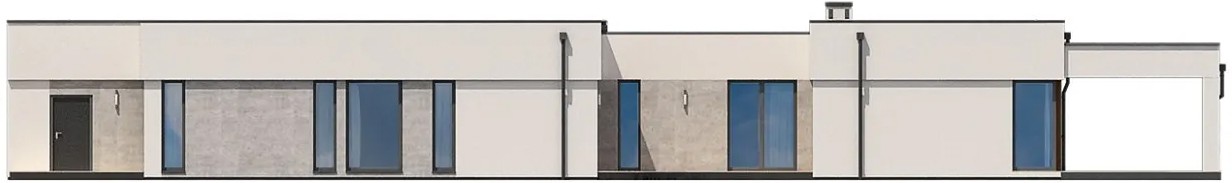 Центральный вход в одноэтажный Дом 16 на 27 будет сделан со стороны веранды. В дом можно попасть через летний сад и гаражные двери.