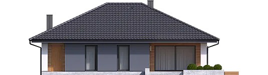 Дизайн дома отличается простым корпусом, покрытым шатровой крышей. Такое сочетание однозначно связано с меньшими затратами на строительство. Одноэтажный дом из газобетона 11 на 14 относится к группе проектов площадью до 200 кв. м, поэтому стоимость его строительства можно приравнять к стоимости покупки квартиры. Простая конструкция также означает меньший риск ошибки во время строительства, что в свою очередь упрощает поиск строительной бригады.
