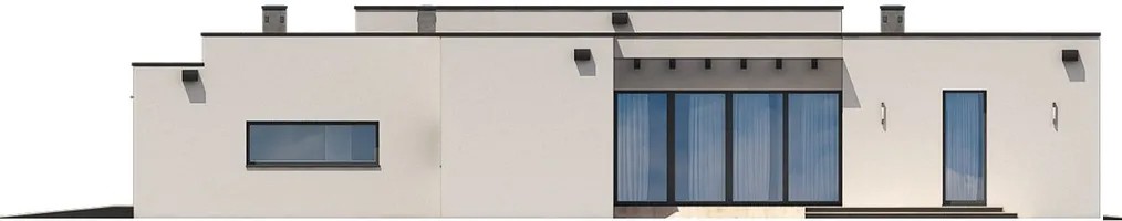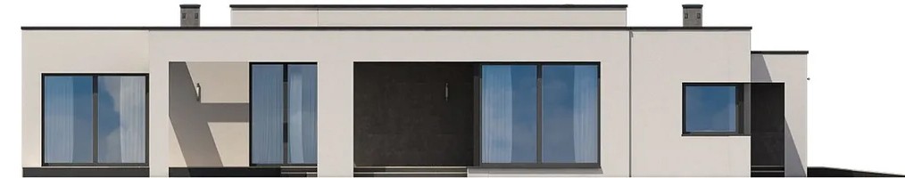 Одноэтажный дом с плоской крышей 24 на 22 удобен для проживания нескольких человек. Это современный особняк со строгими геометрическими формами, которые придают ему презентабельность и стильный внешний вид. Полезная площадь в доме составляет 385,3 квм, предусмотрено несколько спален, 3 отдельных санузла. В гараже можно без проблем разместить авто с любыми габаритами.
