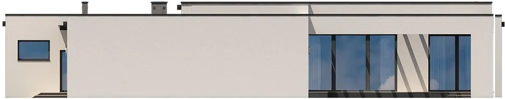 Везде преобладают прямые, четкие линии, дом прекрасно вписывается в окружающий ландшафт. Предусмотрены большие окна, которые впускают в дом много света. Белый цвет создает дому нарядную внешность, более темные линии крыши обеспечивают экстерьеру дома элегантность и завершенность.
