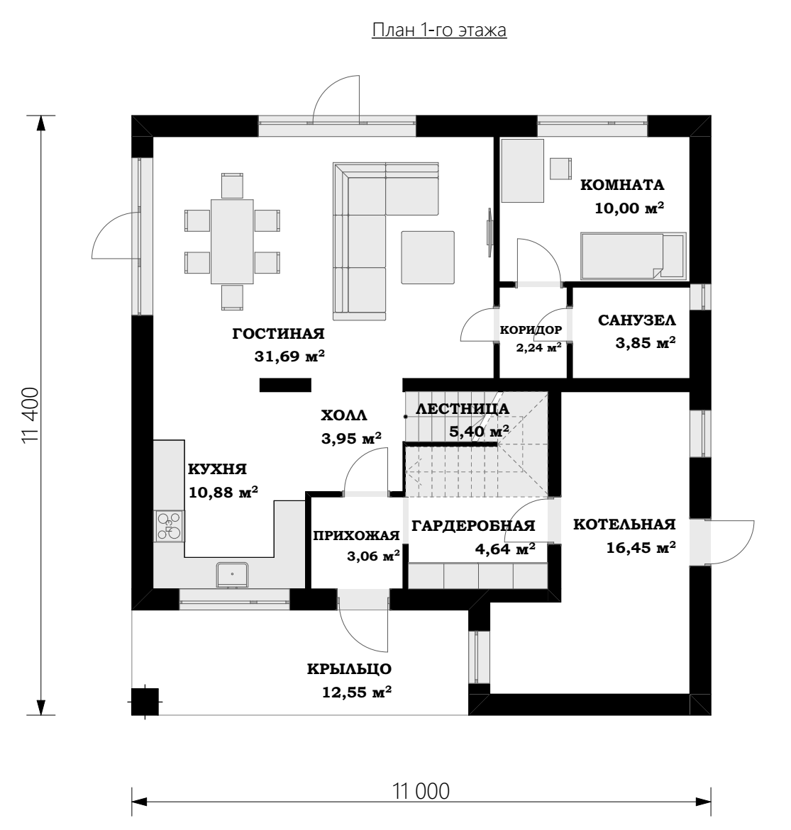 11.00 × 11.40 м