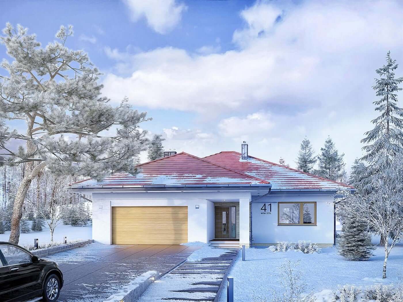 Дизайн проекта также включает в себя гараж на две машины. Попасть в него можно изнутри дома, что, согласитесь, актуально, когда на улице минусовая температура ❄