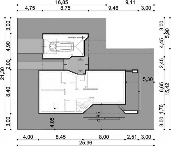 "Овьедо" это дом, созданный для клиентов, для которых компромисс между гостиной, открытой для фермы, нужным количеством спален и гаражом, достигнутым в проекте "Овьедо", будет достаточным. В этом проекте дома 19 на 15 с мансардой, в пользу дополнительной спальни на первом этаже, мы отказались от расположения гаража в корпусе дома. Благодаря этой процедуре в доме с "Овьедо" вы найдете до 4 спален, гостиную, открытую для фермы. Интересная форма проекции здания создает повод для чрезвычайно эффективной планировки экстерьера. Заглавная ниша с террасой является идеальным местом для отдыха с книгой, а большая крытая терраса, расположенная у окна двухэтажной гостиной, способствует проведению времени с семьей. Крыша, соединяющая блок жилой части дома с гаражом, представляет собой уютное уличное пространство. Стоит добавить