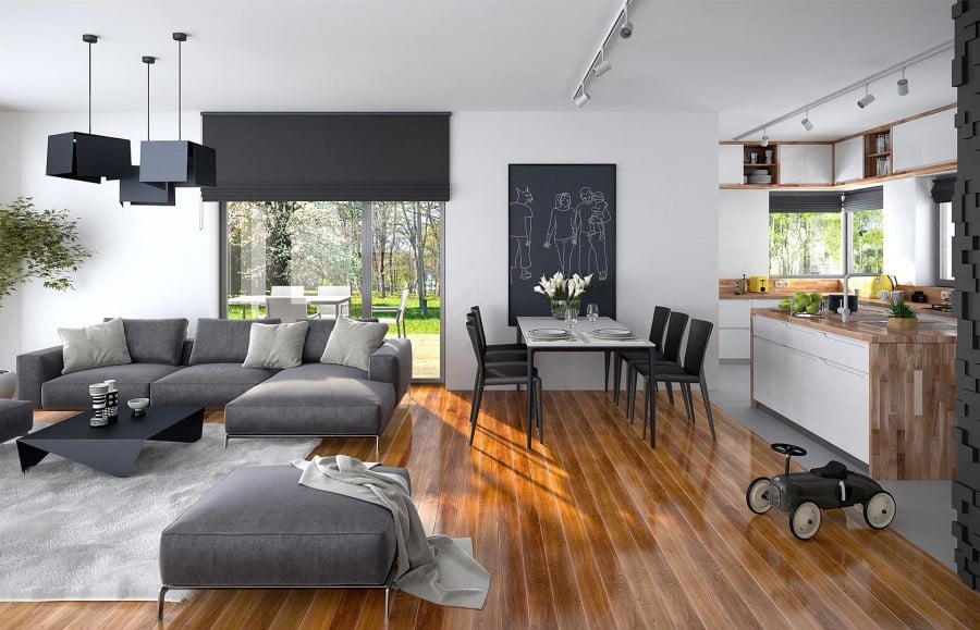 Проект "Мюнхен" - проект одноэтажного дома с гаражом на две машины. Дизайн дома характеризуется привлекательным внешним видом и может быть отделан высококачественной каменной облицовкой, которая усиливает эффект элегантности и стиля. Шатровая крыша с правильным наклоном придает дому правильную пропорцию и стиль. План дома внутри характеризуется продуманным функциональным расположением просторных комнат. Стоит упомянуть многочисленные кладовые и дополнительные помещения, которые позволят убирать вещи до следующего сезона. Дом имеет крытую террасу с элегантными формами, которая является неотъемлемой частью архитектуры дома, создавая единое целое.