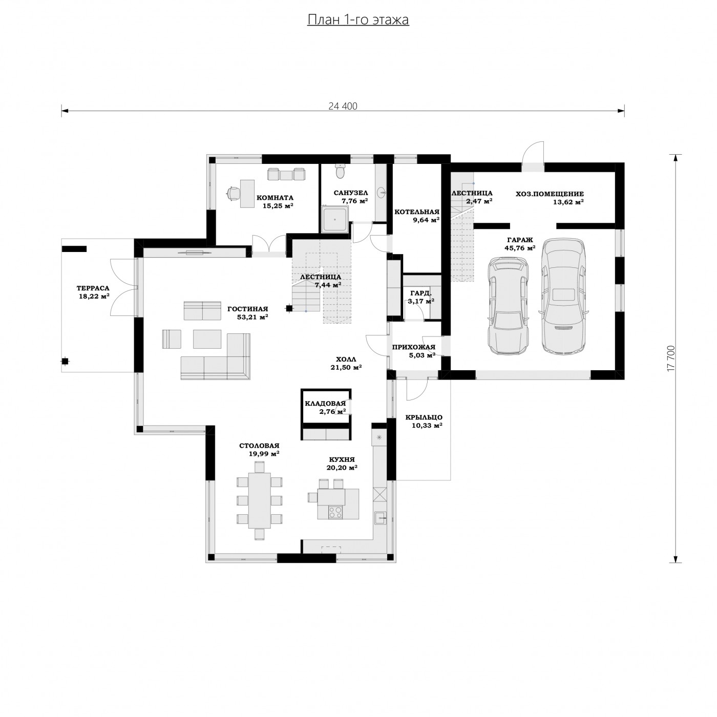 Здание имеет очень презентабельный внешний вид. Это определит статус и вкус его будущих владельцев. Интерьер дома был спроектирован путем разделения пространства на жилую и хозяйственно-гаражную части на первом этаже, а также спальни и дополнительные комнаты на первом этаже.