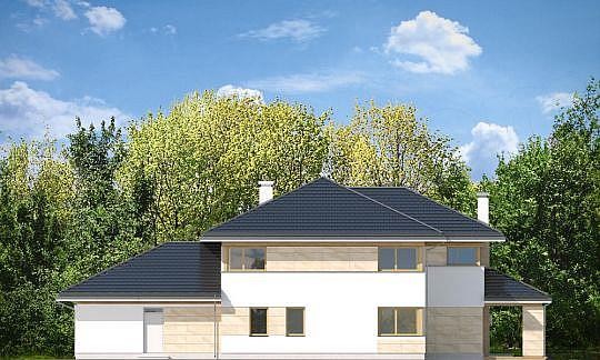 Дом дизайна "Мадрид" с видом Б представляет собой вариант варианта дизайна из популярной серии «Дома с видом». Дизайн отличается от базовой версии главным образом ликвидированной пустотой над гостиной с мезонином на первом этаже.