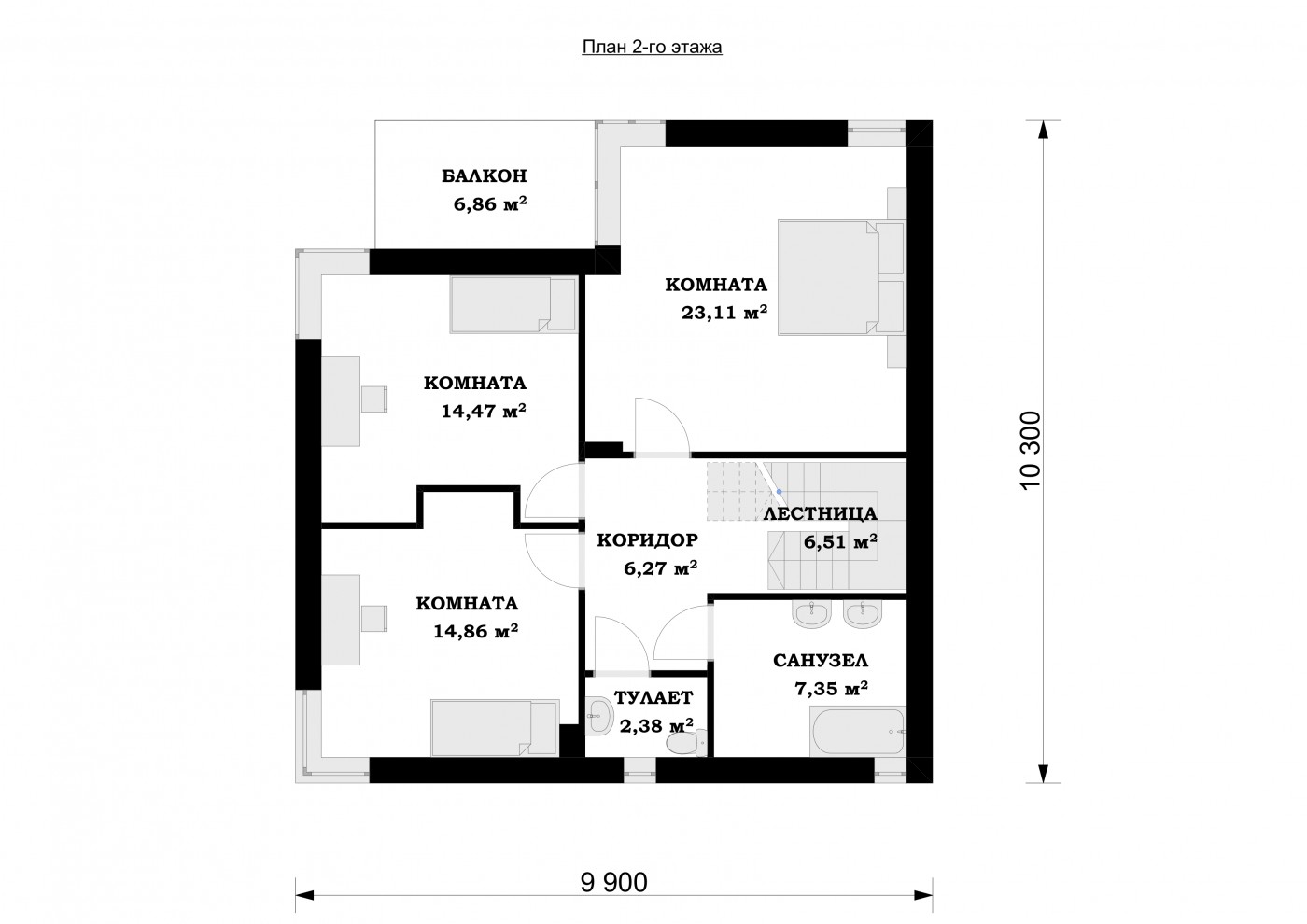 Дом отлично подойдет семье из 3-4 членов семьи, ведь на втором этаже расположены 3 отдельные комнаты-спальни, которые позволяют с комфортом всем разместиться. Второй этаж, также как и первый, оборудован отдельным санузлом, но помимо этого расположен и отдельный туалет, тем самым создавая комфортную среду проживания для большой семьи. Все это лишь малая часть плюсов, которые выделяют данный проект.