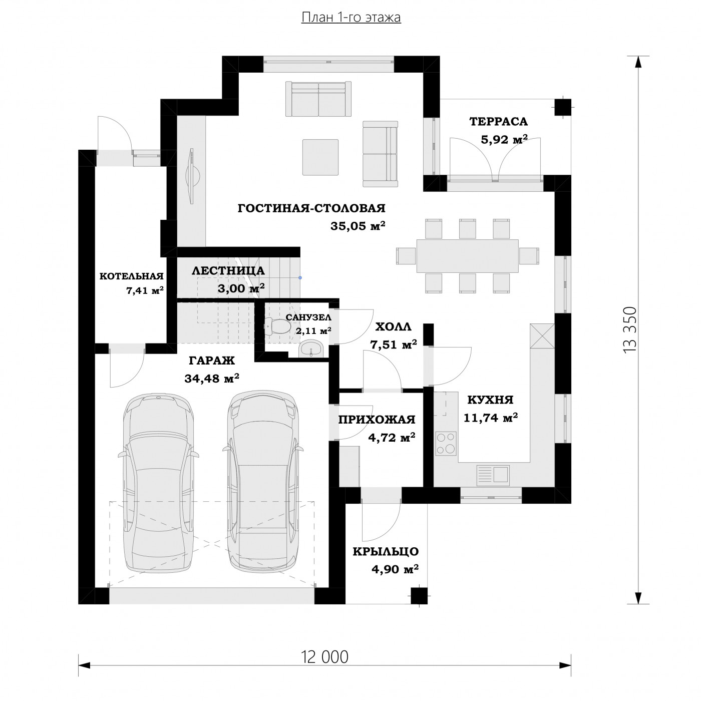 В доме также предусмотрен гараж на два автомобиля с большой котельной с техническим выводом.