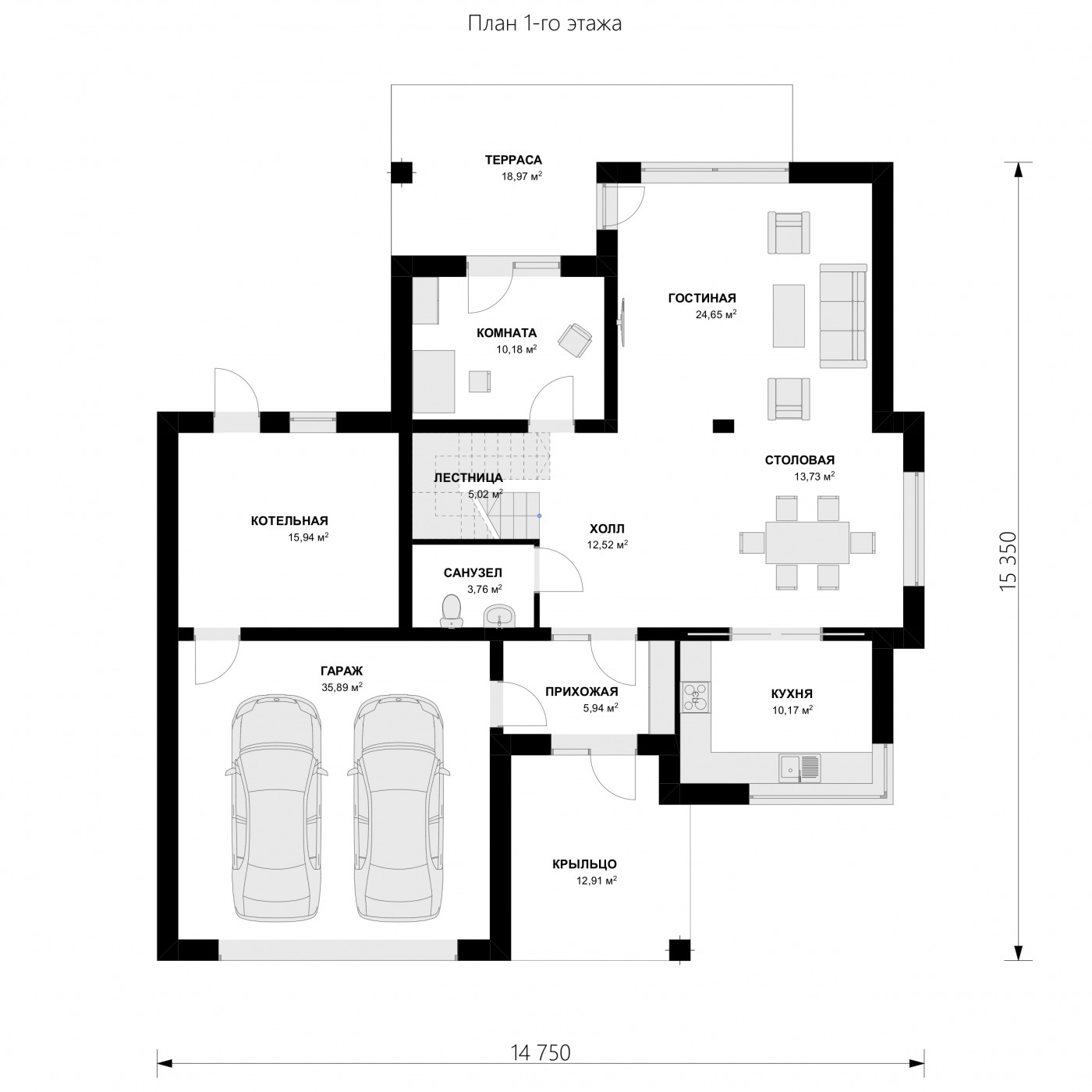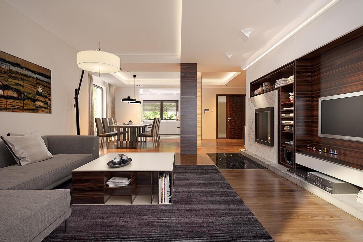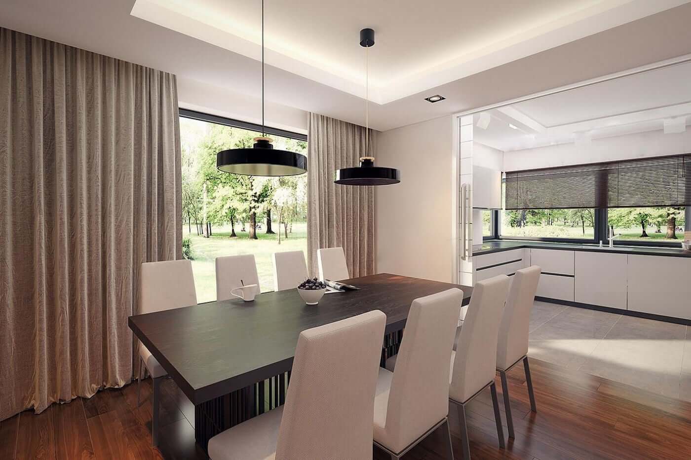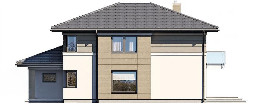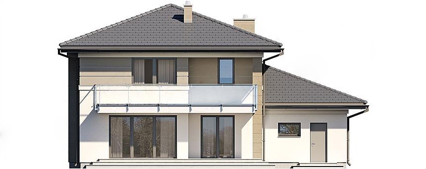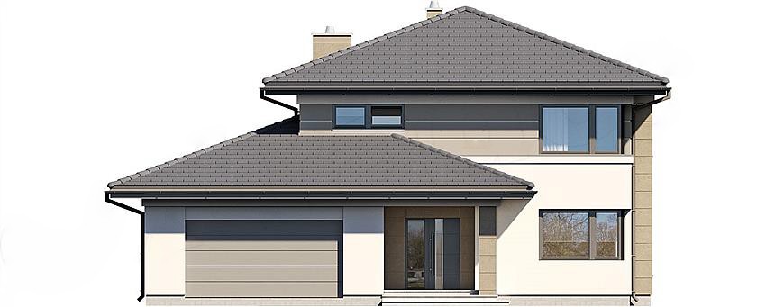 "Лион" - проект представительского двухэтажного дома для семьи из 4 человек. Это типичная городская резиденция с современным обликом, размером 15 х 15 и оптимальной полезной площадью. Первый этаж был спроектирован как открытое жилое пространство, состоящее из объединенной гостиной, столовой и кухни. Здесь также есть дополнительная комната, которая может быть использована как кабинет или дополнительная спальня. На первом этаже также есть большая котельная для каждого вида топлива и гараж на две машины, благодаря покрытию частично крытых террас, частная зона отдыха была получена на террасе. На первом этаже расположены 3 спальни, ванная комната и прачечная. В главной спальне есть свой гардероб и ванная комната. Такое дополнительное пространство можно преобразовать, например, в рабочий уголок. "Лион" впечатляет утонченной, неподвластной времени классической формой, запечатленной в современном элегантном образе. Эта резиденция является отличным предложением для инвесторов, ищущих удобный и эстетичный дом.