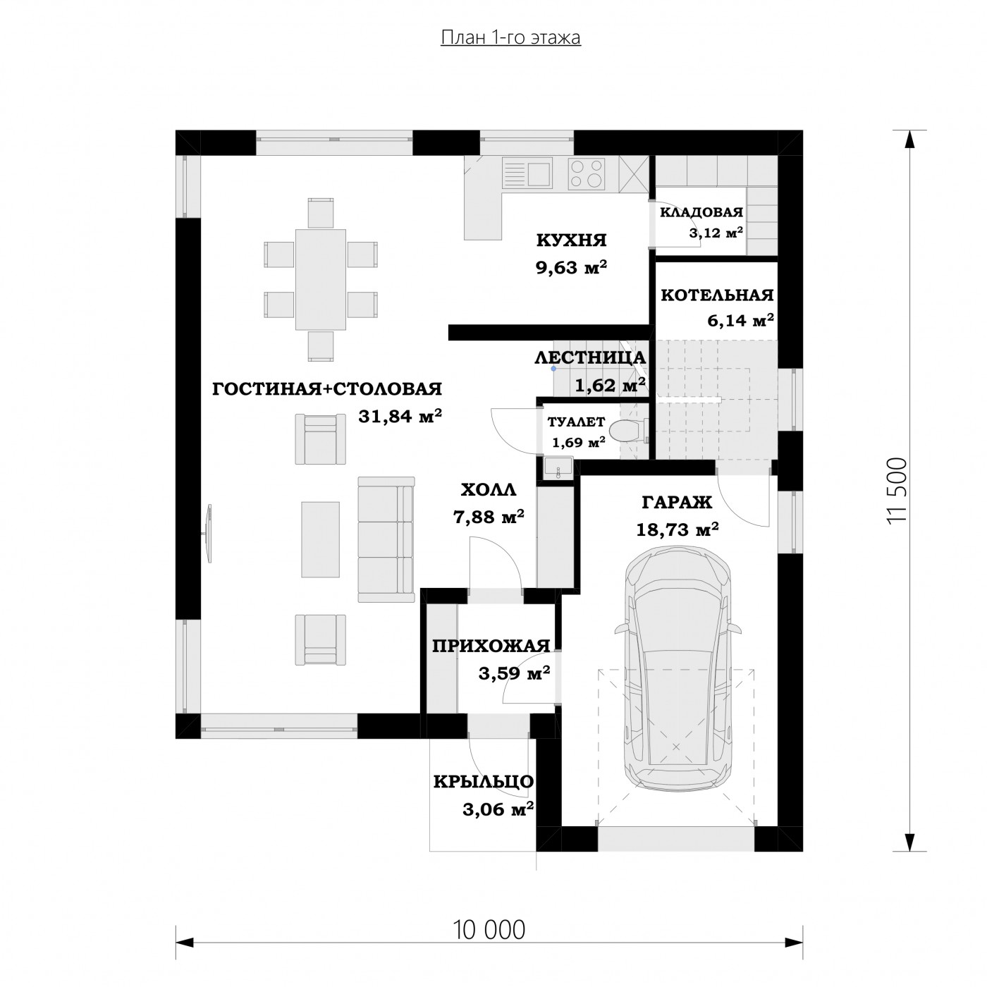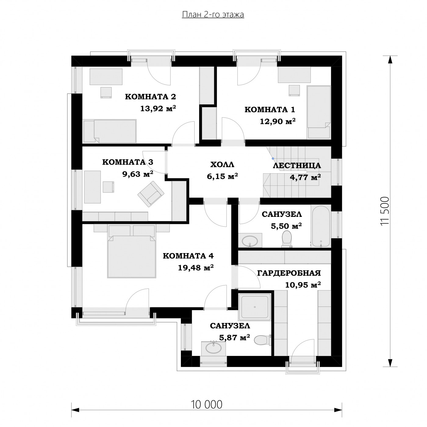 • Черновая высота потолка 3,0м; Высота второго этажа - 2.75