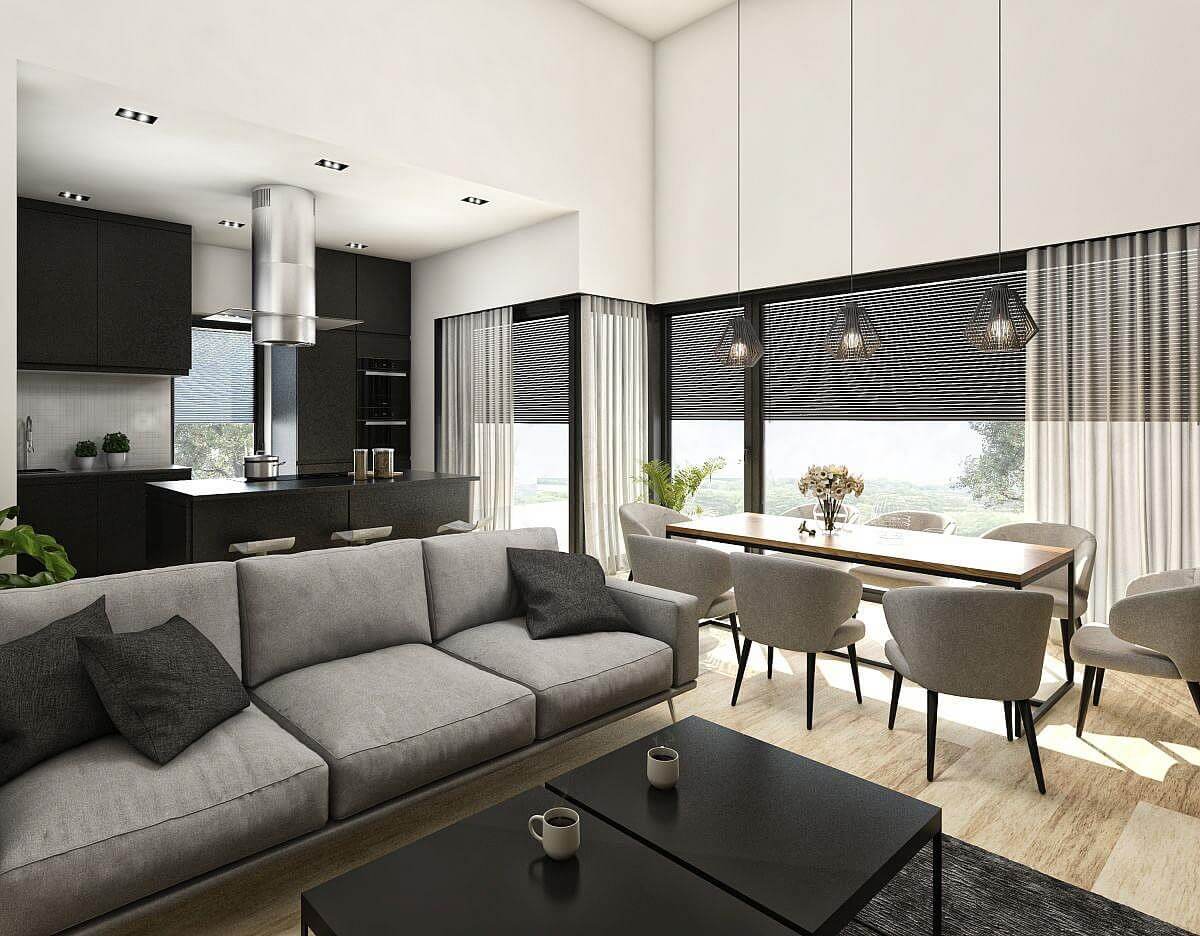 Гостиная объединена с кухней и обеденной зоной – вкусные запахи любимых блюд будут добавлять ей уюта, а приготовление ужина за разговорами с семьей станет доброй традицией ?