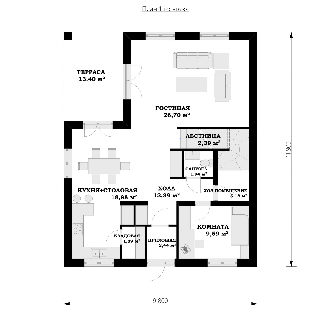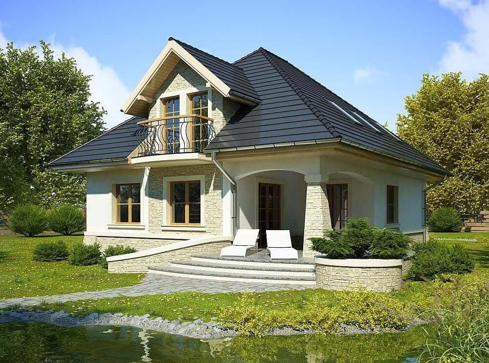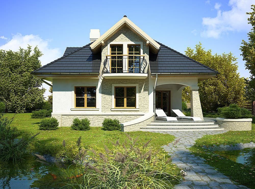 В отличие от своего собрата, дизайн дома имеет меньшую площадь и размеры, однако здесь нет гаража. План дома "Сакраменто" - интересное предложение для людей, желающих построить дом 10 на 12 с мансардой из газобетонна или пеноблоков.  В этой конструкции гребень расположен перпендикулярно дороге, что часто определяется в строительных условиях. Предназначен для отдельно стоящих зданий. Это также интересное предложение для людей, которые ищут дом с крышей-конвертом, которая характеризуется высокой устойчивостью к неблагоприятным погодным условиям. Проект "Сакраменто" представляет собой одноэтажный дом с мансардой, благодаря которому мы можем наслаждаться большой площадью, даже на относительно небольшом участке. Дизайн дома характеризуется просторной дневной зоной. Он создан, среди прочего, функциональной кухней, которая порадует каждого инвестора. Сторонники практических решений, несомненно, будут рады, что есть также место для кладовой. Интересным элементом, безусловно, является камин, расположенный в гостиной, который придаст интерьеру неповторимую атмосферу. Дизайн включает в себя туалет на первом этаже и ванную комнату на верхнем этаже. Четыре спальни идеально подходят для семьи из 4-6 человек. Пространство также может быть использовано в качестве комнаты для гостей или учебы. Кроме того, в доме также есть подсобное помещение, которое вы можете использовать в соответствии с вашими потребностями. Семейные посиделки в солнечные дни с террасой возле дома. Проект выполнен по кирпичной технологии, благодаря чему дом сохраняет приятную прохладу в жаркую погоду.