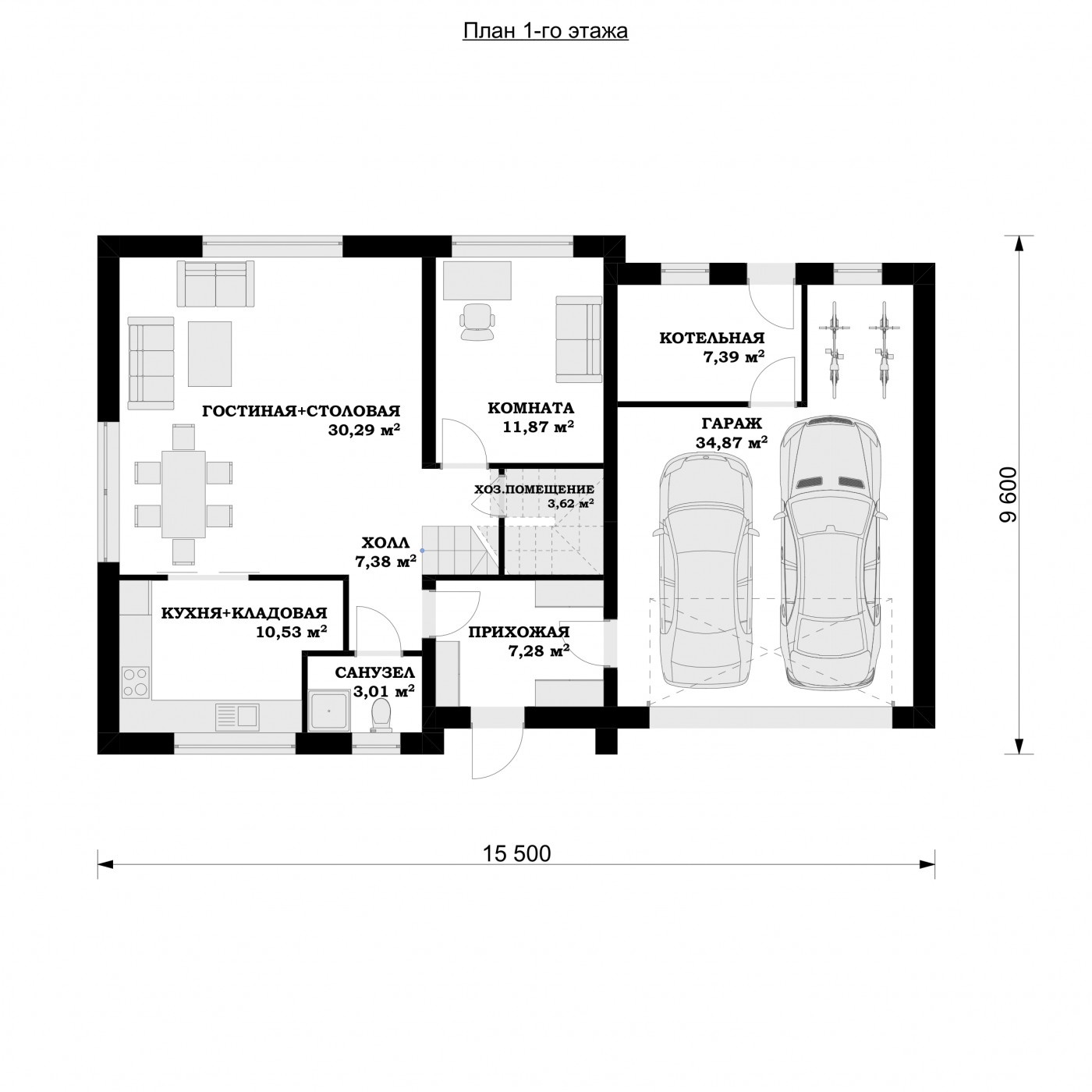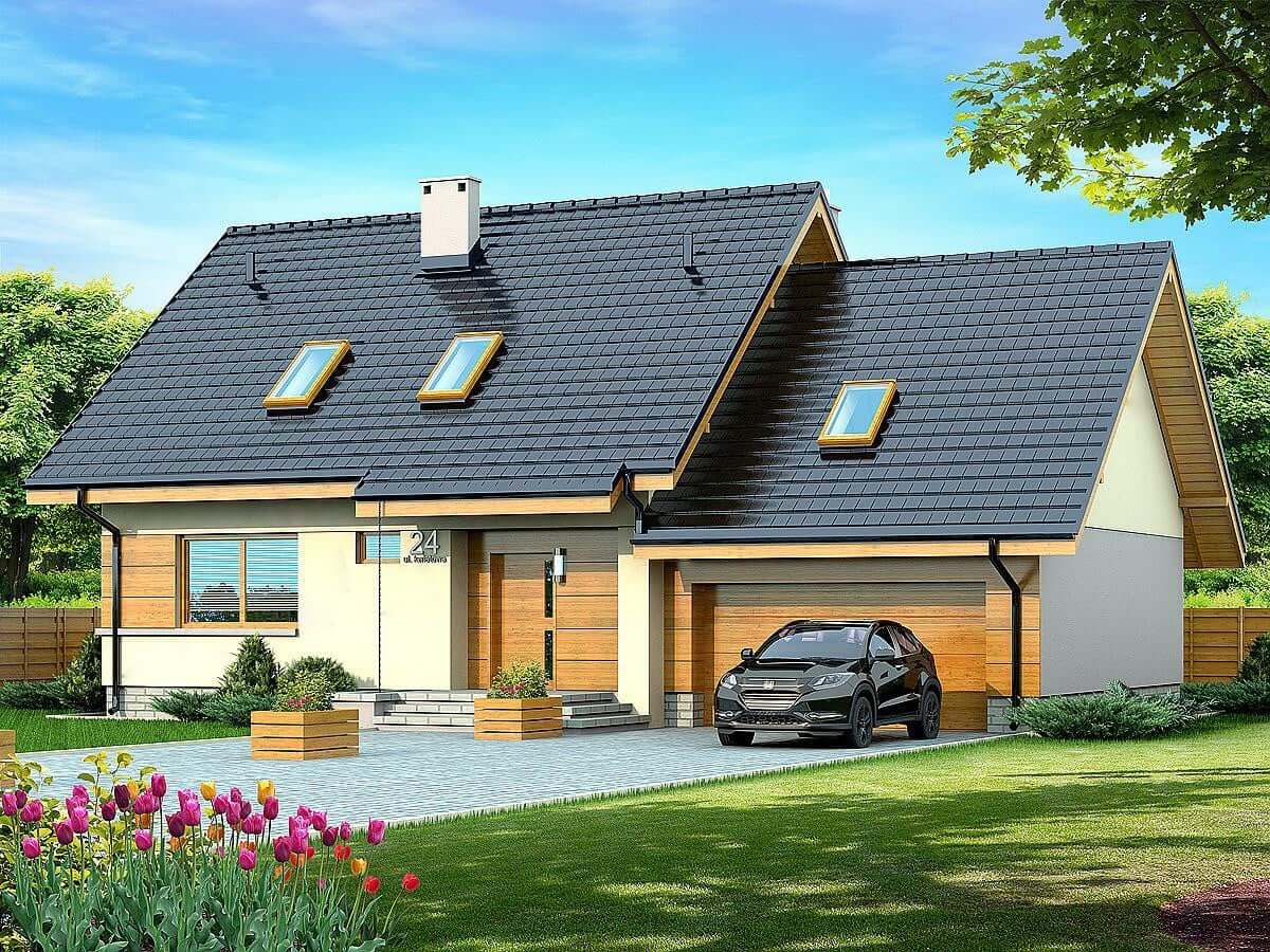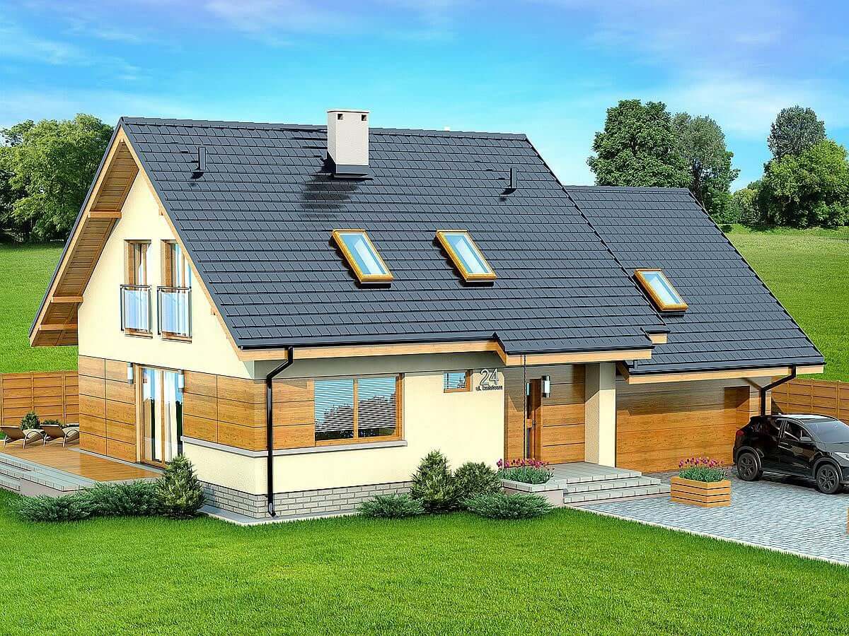 Дом "Лиссабон" имеет большую площадь, и размеры 15 х 10 большой гараж. План дома "Лиссабон" - идеальное решение для людей со средним заговором. В доме есть типичный блок, что значительно облегчает последующую внутреннюю обустройство. Проект относится к категории домов с гребнем, обращенным параллельно дороге, что часто указывается в плане пространственного развития. Дом был спроектирован для отдельно стоящих зданий. Проект может быть расположен на границе участка, поэтому он может быть реализован в двухквартирном доме. Автор проекта включил двойной гараж в корпусе здания. Дизайн является идеальным предложением для тех, кто заинтересован в доме с двускатной крышей, что делает его дешевым и простым решением. Проект "Лиссабон" представляет собой одноэтажный дом с мансардой, что означает, что его площадь четко разделена на дневную и ночную зоны. Столовая в сочетании с гостиной - это решение, которое получает все больше и больше поклонников благодаря современному и просторному дизайну интерьера. В гостиной есть атмосферный камин, который дарит приятное тепло и создает в интерьере приятную атмосферу. Практическим решением является включение в дизайн двух ванных комнат - как снизу, так и сверху. Ночная часть состоит из четырех спален, которые хорошо подойдут для семьи из 4-6 человек. Пространство также может быть использовано в качестве комнаты для гостей или учебы. Кроме того, в доме также есть подсобное помещение, которое вы можете использовать в соответствии с вашими потребностями. Терраса у дома хороша для проведения времени на свежем воздухе. Проект создан для инвесторов, планирующих построить дом по кирпичной технологии. "Лиссабон" относится к традиционному стилю, который идеально подходит для людей, которые ценят классику и простоту.