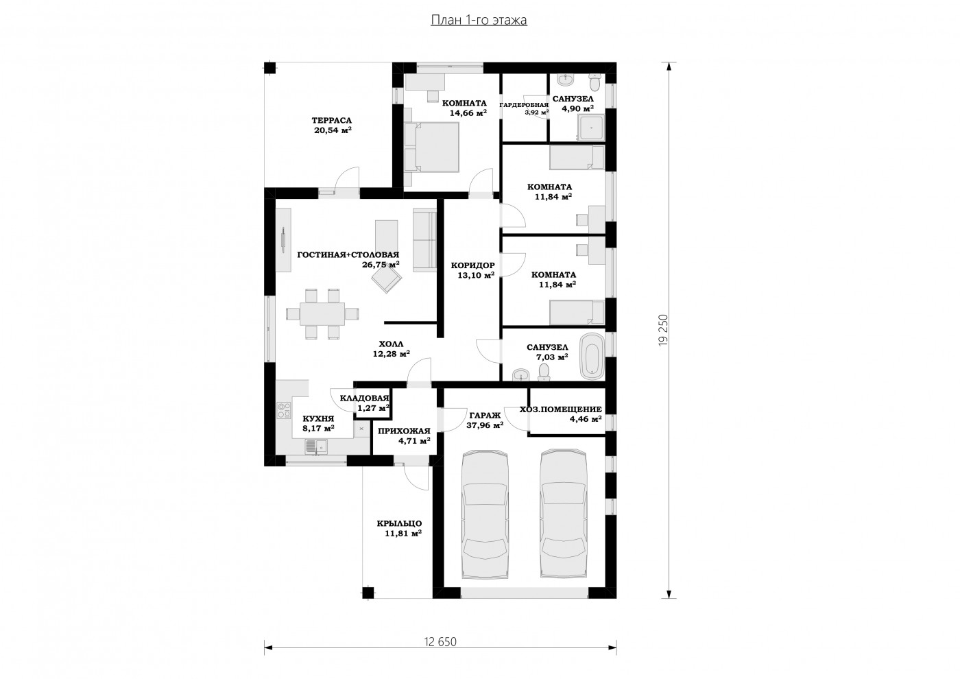 Одноэтажный дом 12 на 19