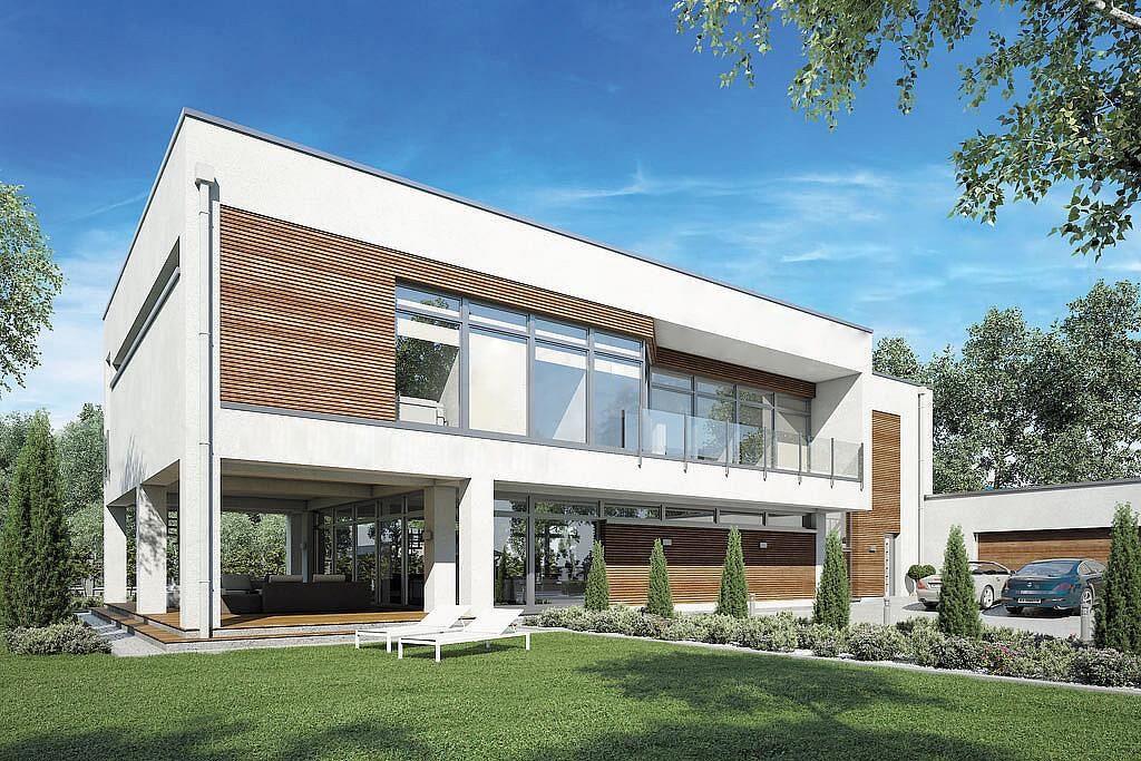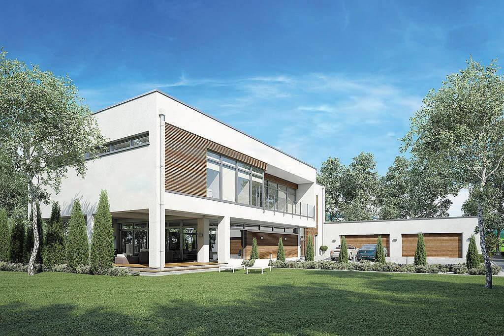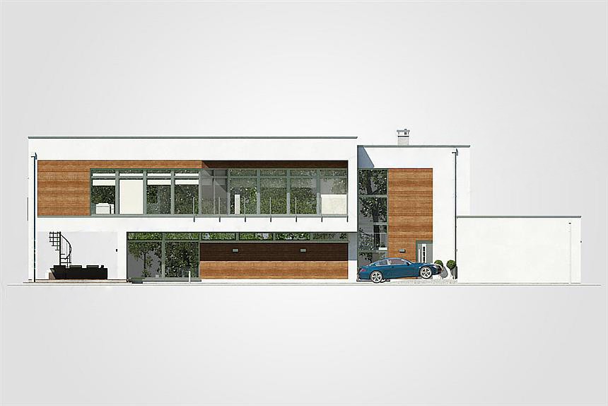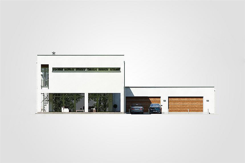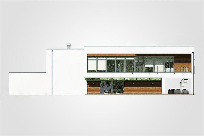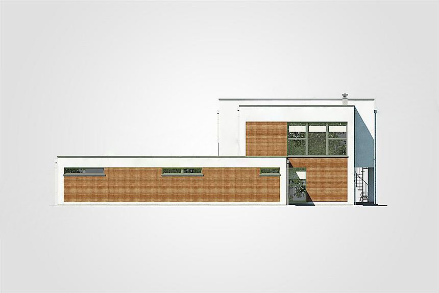 Дизайн дома "Пусан" с плоской крышей, с террасой и входом с юга, зацените!