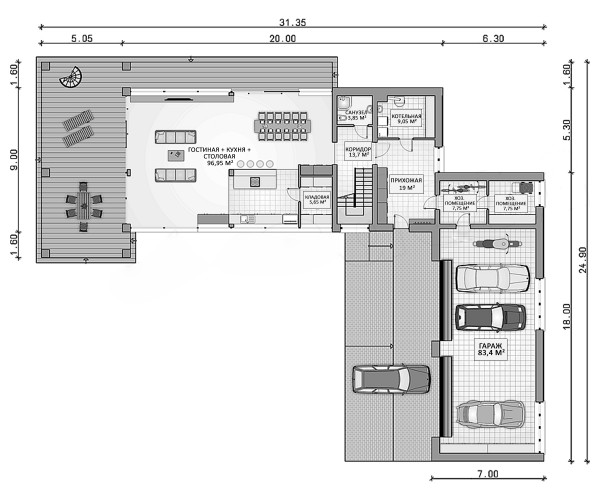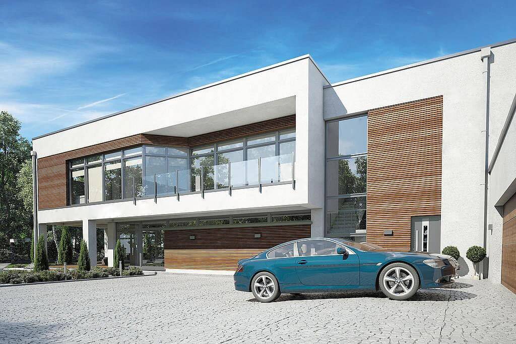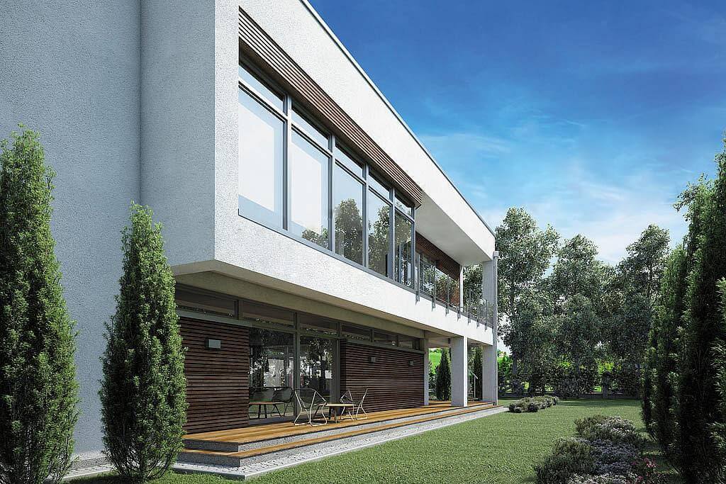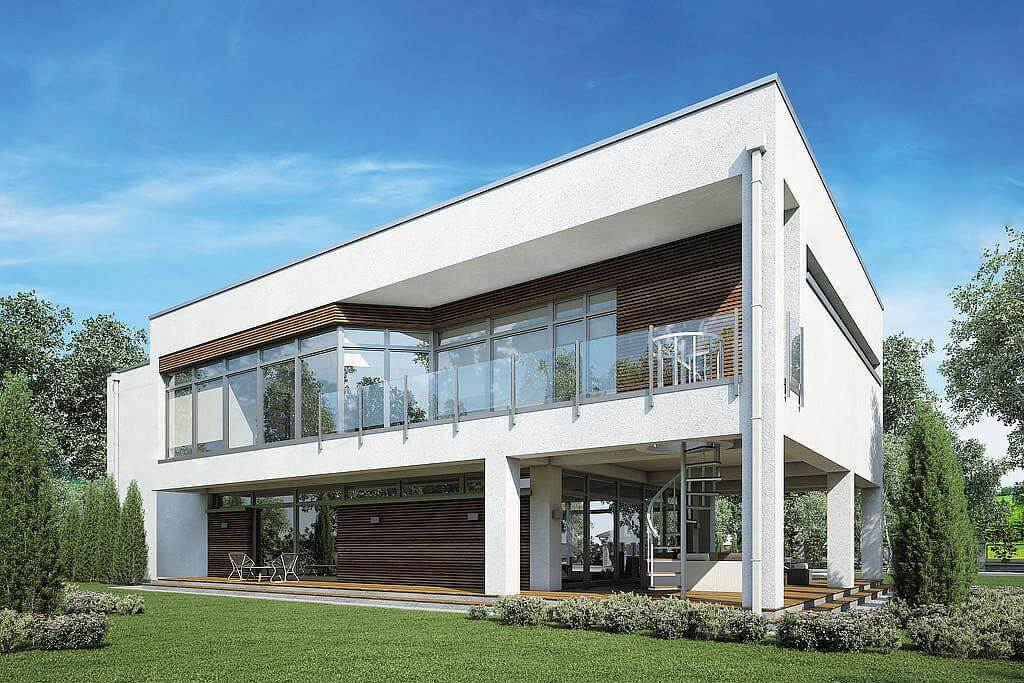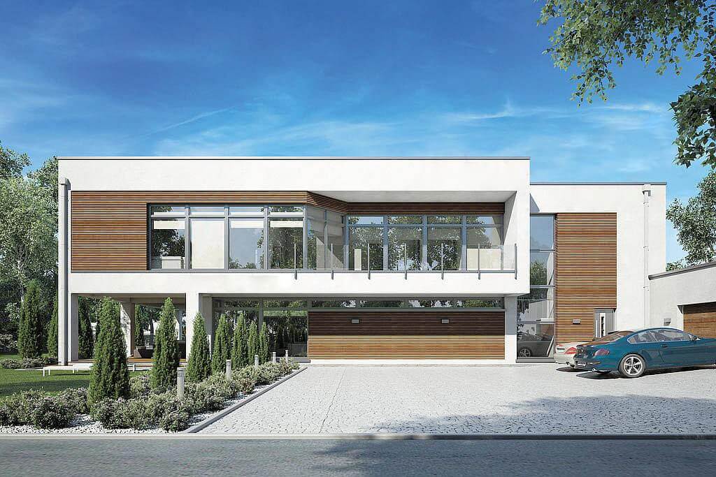 Дизайн дома "Пусан" с плоской крышей, с террасой и входом с юга, зацените!