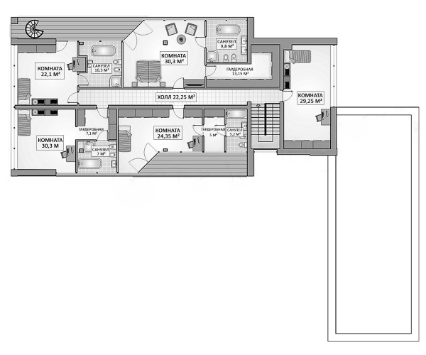 • Черновая высота потолка 3,0м; Высота второго этажа 2.75