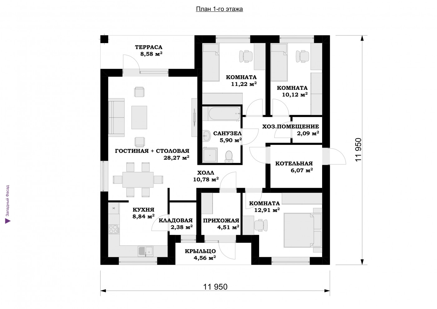 План дома "Варшава" подходит для участка средней ширины. В доме типичный блок, поэтому его реализация проста. Дом был спроектирован для отдельно стоящих зданий. Конструкция здания покрыта тентовой крышей, которая выглядит великолепно. Проект "Варшава" представляет собой одноэтажный дом, что, безусловно, является огромным плюсом для пожилых людей, инвалидов и браков с маленькими детьми. Сердцем дома является просторная дневная зона, которая способствует проведению времени вместе с близкими людьми. Открытая кухня - идеальное место для семейных и дружеских встреч. Кладовая, включенная в дизайн, значительно облегчит упорядоченность. Столовая, включенная в дизайн, соединена с гостиной, благодаря чему интерьер приобретает современный характер. В гостиной есть атмосферный камин, который дарит приятное тепло и создает в интерьере приятную атмосферу. Автор проекта предоставил для него одну ванную оптимальных размеров. Ночная часть состоит из трех спален, которые хорошо подойдут для семьи из 2-4 человек. Пространство также может быть использовано в качестве комнаты для гостей или учебы. Комфортное использование дома также зависит от подсобного помещения, включенного в него. Семейные посиделки в солнечные дни с террасой возле дома. Проект создан для инвесторов, планирующих построить дом по кирпичной технологии. Его внешний вид относится к традиционному стилю, благодаря которому он идеально подойдет к любому ландшафту. Ночная часть состоит из трех спален, которые хорошо подойдут для семьи из 2-4 человек. Пространство также может быть использовано в качестве комнаты для гостей или учебы. Комфортное использование дома также зависит от подсобного помещения, включенного в него. Семейные посиделки в солнечные дни с террасой возле дома. Проект создан для инвесторов, планирующих построить дом по кирпичной технологии. Его внешний вид относится к традиционному стилю, благодаря которому он идеально подойдет к любому ландшафту. Ночная часть состоит из трех спален, которые хорошо подойдут для семьи из 2-4 человек. Пространство также может быть использовано в качестве комнаты для гостей или учебы. Комфортное использование дома также зависит от подсобного помещения, включенного в него. Семейные посиделки в солнечные дни с террасой возле дома. Проект одноэтажного дома 12 на 12 с террасой создан для людей, планирующих построить дом по блочной технологии. Его внешний вид относится к традиционному стилю, благодаря которому он идеально подойдет к любому ландшафту.